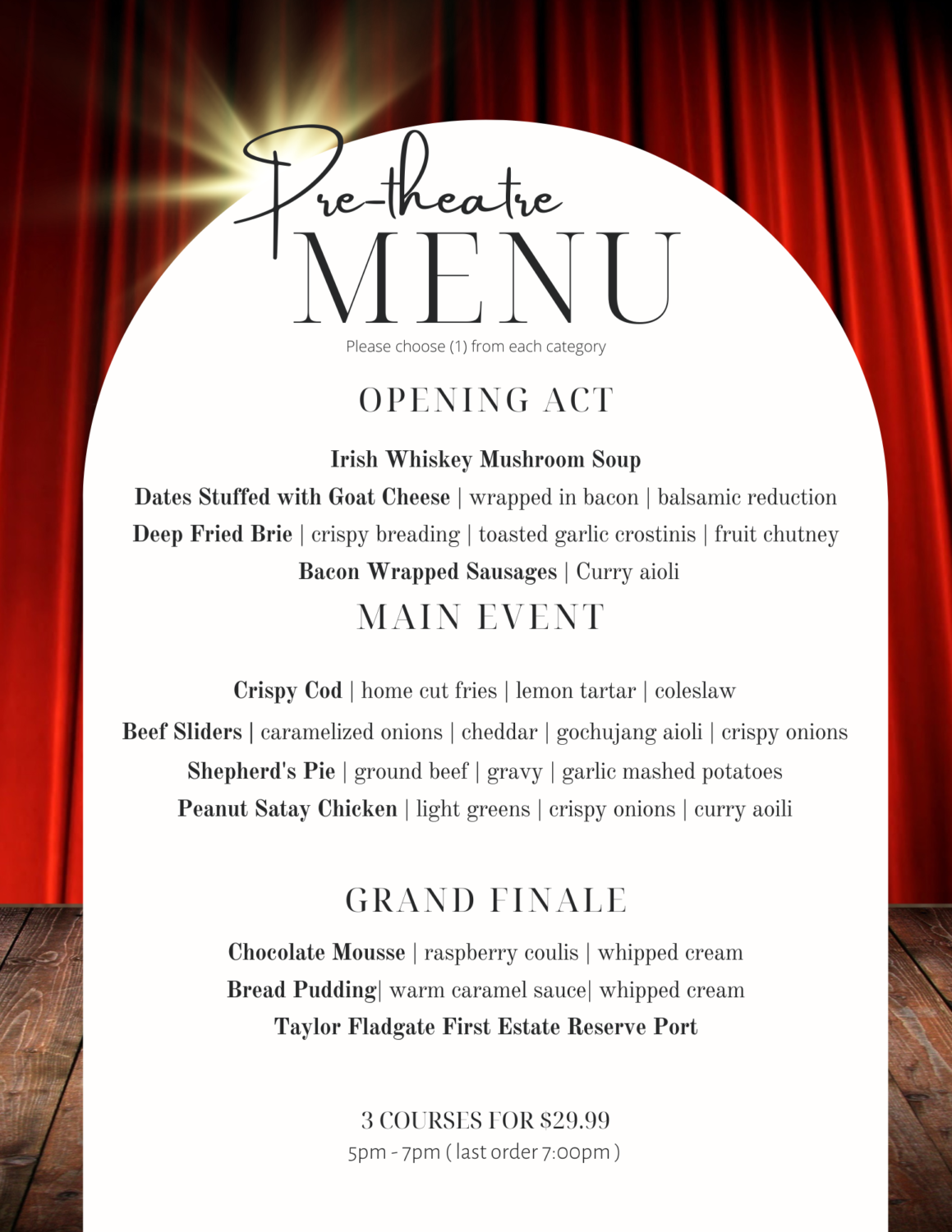 Enjoy a 3-course themed menu inspired by the current play in Theatre Calgary’s season! Includes a glass of house wine, and free parking (subject to availability) for $47.